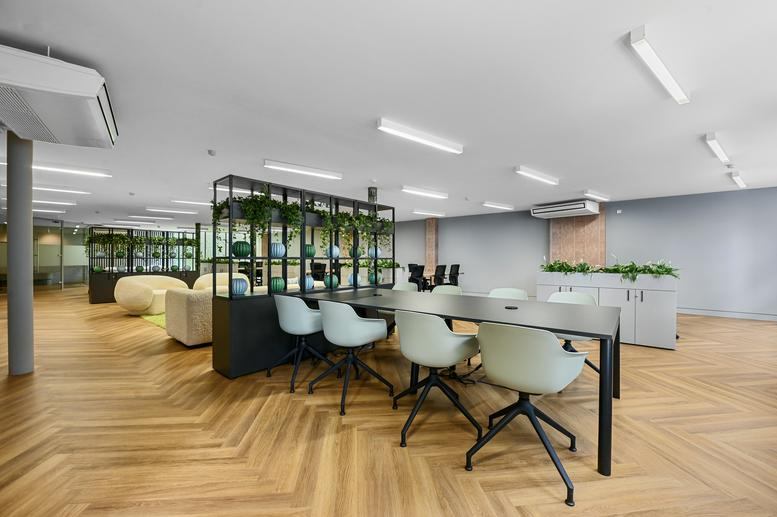 This workspace offers a contemporary, fully serviced environment tailored for businesses looking for a seamless setup with low operational overheads. Located in the heart of Shoreditch, the building features three floors of refurbished, move-in-ready offices, complete with meeting rooms, fully equipped kitchens, and dedicated relaxation areas. Tenants benefit from 24/7 access, providing flexibility and reliability in a secure setting. Additional facilities include climate control, staff showers, bike storage, lounge spaces, outdoor areas, and comprehensive surveillance systems. A rooftop terrace with panoramic views is set to be available to all occupants by mid-2025.