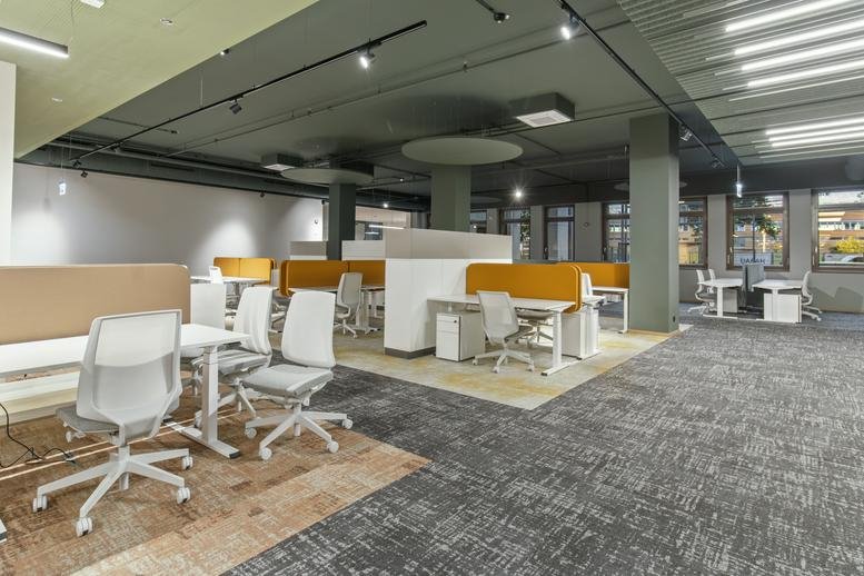 The space offers a selection between fixed or flexible desks, with fixed desk options including a company address and dedicated post box. A welcoming lounge with a coffee corner and a spacious terrace provides areas for relaxation and informal meetings. Optional extras comprise secure parking facilities, flexible monthly contracts, and access to an on-site bistro and bar. It provides hassle-free setup and adaptable short-term lease options to meet various business needs.