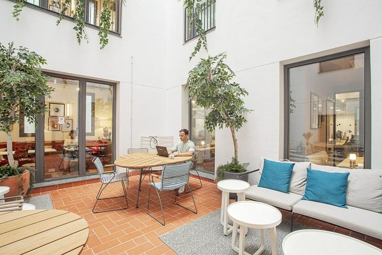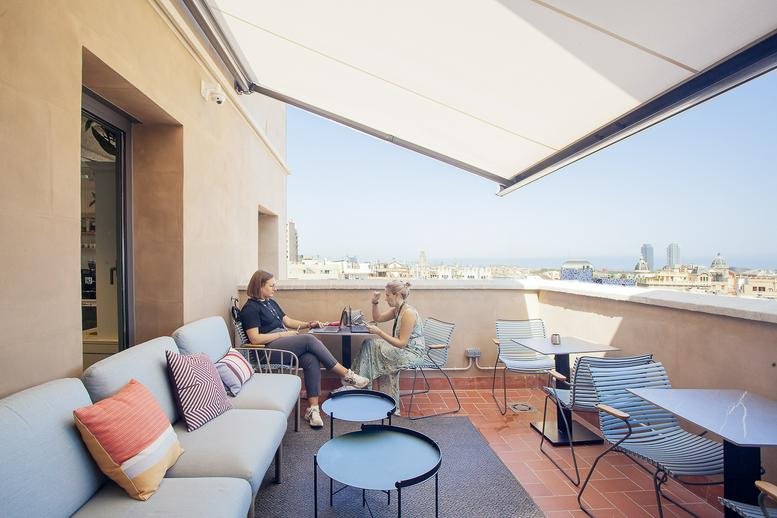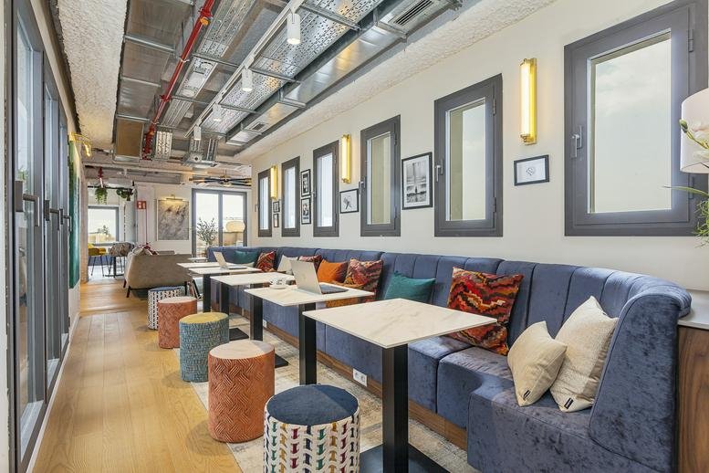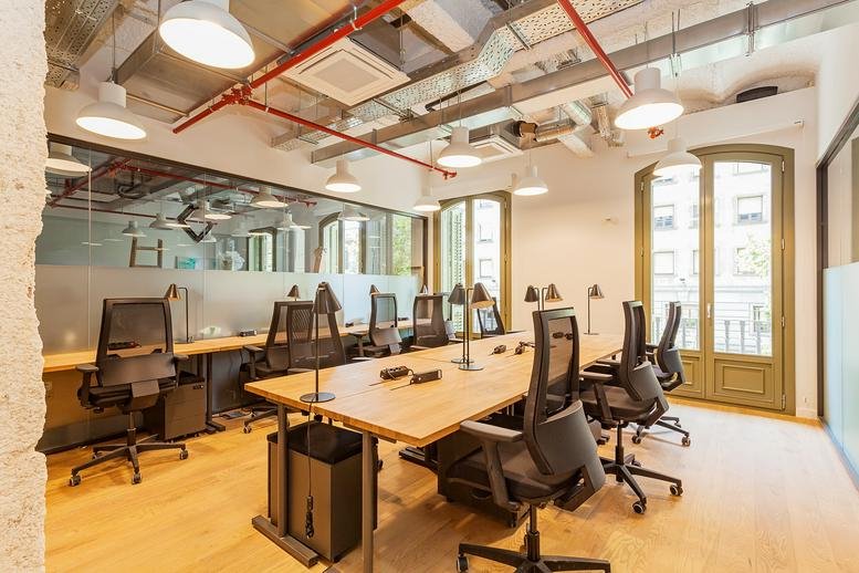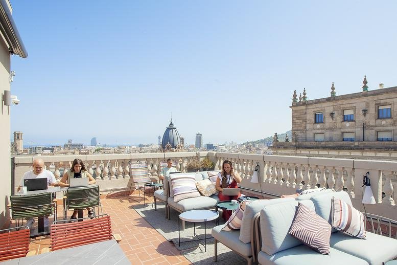 This professional workspace offers a comprehensive suite of services tailored to contemporary businesses. Situated minutes from Plaça Catalunya, the venue blends historic architectural details with modern interiors to create an elegant, professional atmosphere. Members enjoy five outdoor patios and a top-floor terrace with sweeping city and coastal views. The facility provides year-round 24/7 access and is supported by a staffed front desk and administrative team. It features robust digital infrastructure and high-speed broadband, and offers private offices as well as communal areas for focused work, informal collaboration, and calls.