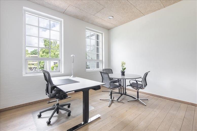 This business centre is located in an old factory that has since been renovated to become one of the most charming historical buildings in Lyngby. It boasts all the classic features of industrial buildings: large windows, high ceilings, and exposed beams making this a unique working environment. Inside, one can find attractive modern office space, fully equipped to the highest quality. There is a stylish reception area with tasteful artwork on the walls, and the offices are unbranded, to emphasise your individual business. There is also on site parking space.