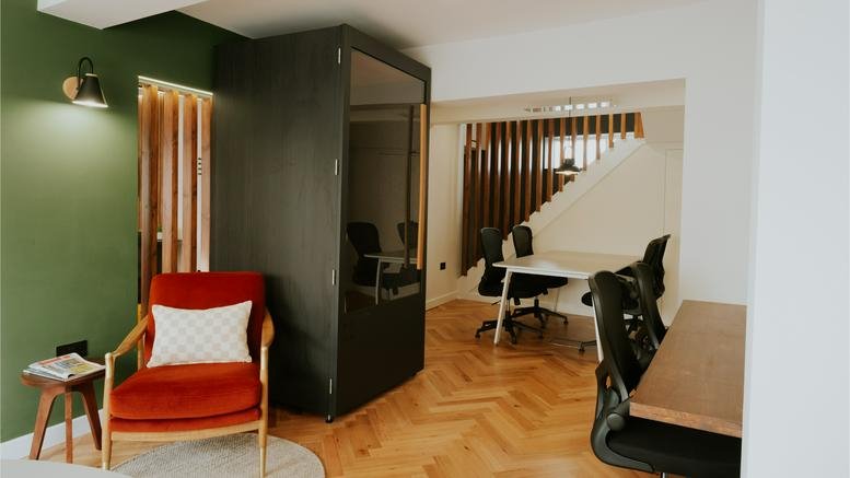 This office centre embodies the essence of a modern workplace, providing a comprehensive range of amenities and services tailored to support businesses. With transparent pricing and a dedicated administrative team, it offers a bespoke package that caters to the unique needs of each organisation. Occupants can enjoy access to a staff lounge, ideal for networking and relaxation, helping to recharge and refocus during breaks. Following a meticulous transformation from its former life as an Indian restaurant and two flats, the space now boasts a contemporary work environment. The ground floor features a relaxed atmosphere, complete with phone and meeting booths, a communal kitchen area, and a window seat offering a change of scenery. The first floor provides open desk spaces, a distinctive box seat, a small kitchen nook, and a five-person meeting room available for rent.