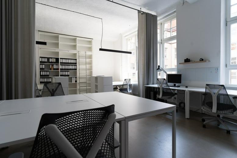 It has an aesthetically pleasing design that combines classic elements with modern conveniences, making it an idyllic space for both collaboration and innovation. The workspace is bathed in natural light and possesses ample ventilation, creating a comfortable and welcoming ambience.