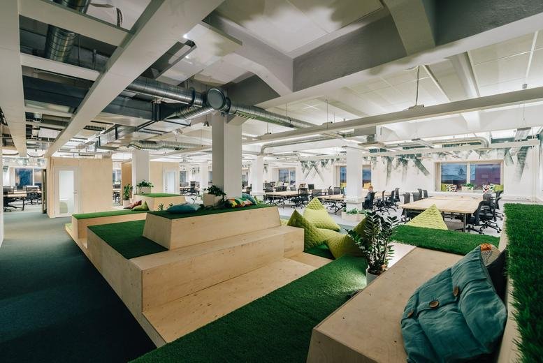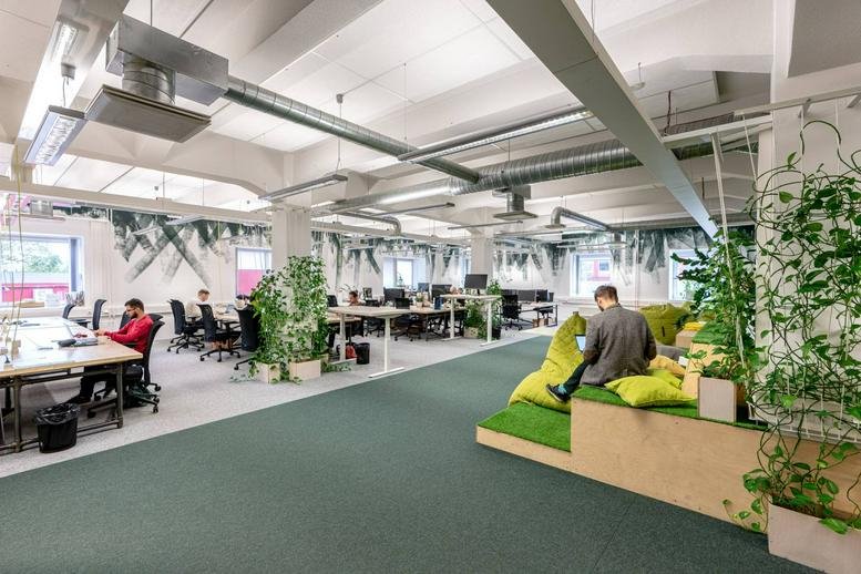 These office suites, situated in a bustling neighbourhood of Tallinn, offer a vibrant yet productive environment. The open-plan layout, designed specifically to foster social interaction and teamwork, encourages each employee to engage with their colleagues and surroundings. The modern, tastefully furnished interior is flooded with natural light from tall windows and lofty ceilings, creating a stimulating atmosphere that boosts productivity. This bright, open space is rich with greenery, conveying a sense of perennial spring.
