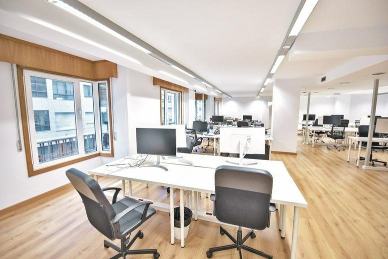 Additional services and facilities are available to enhance the office experience. These features include a kitchen, dining room, spacious outdoor terrace, communal area, and three meeting rooms complete with large SMART TVs. Tenants also benefit from a personal postal address, along with mail and parcel collection services. Furthermore, complimentary offerings like tea, coffee, water, and newspapers are provided as part of the complete package.