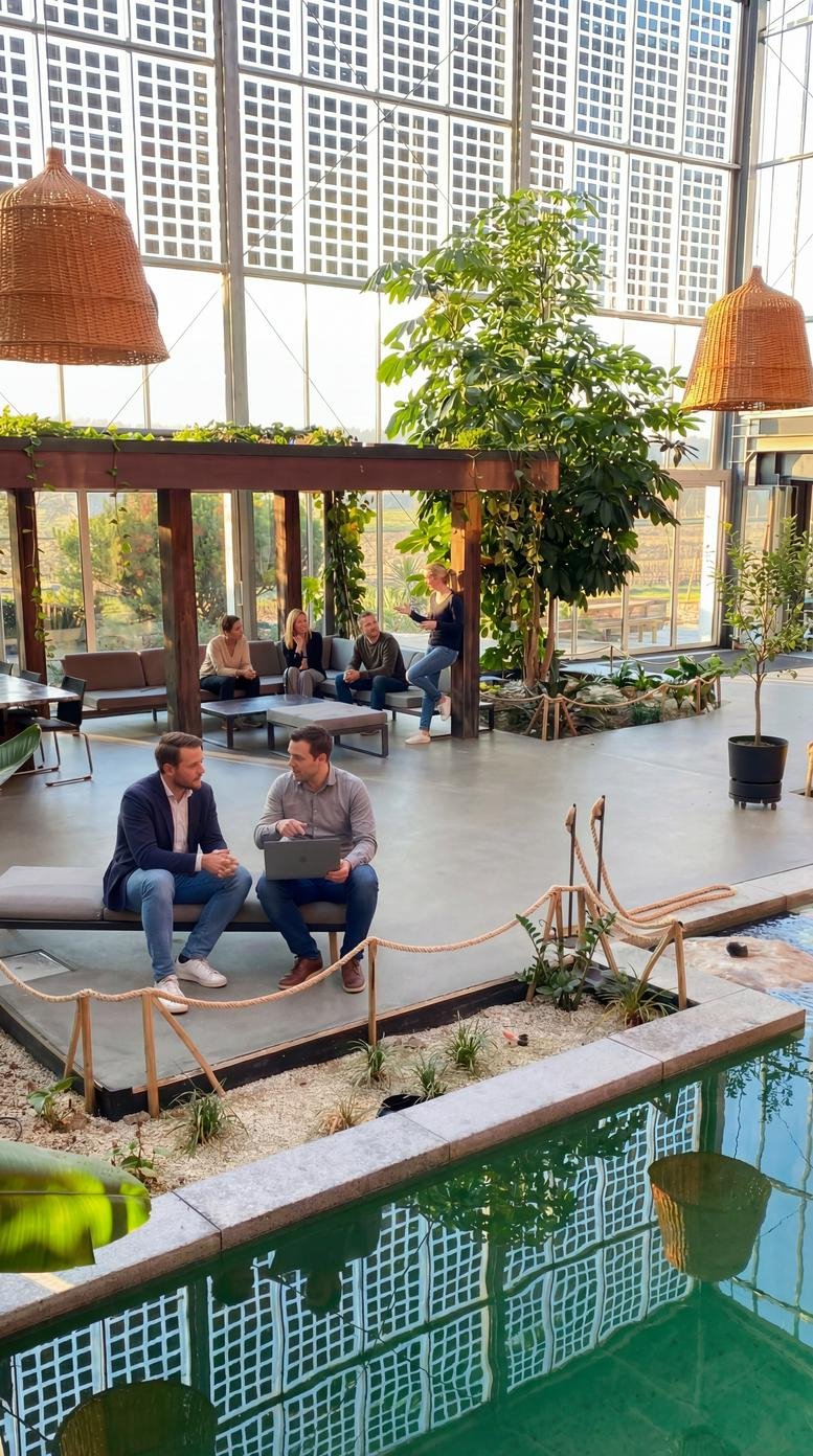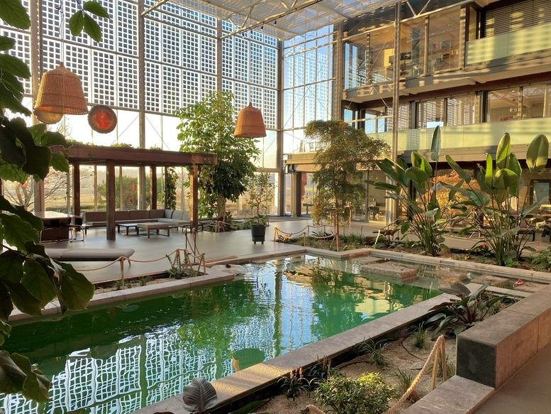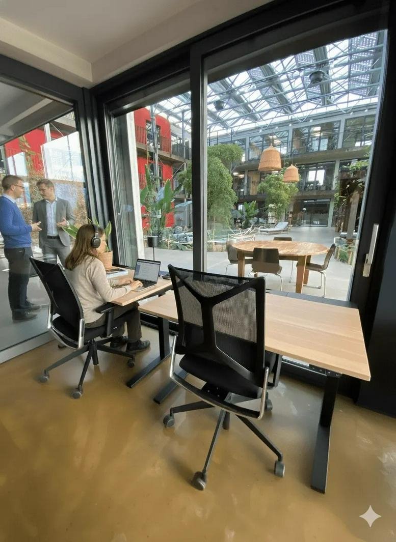 Filled with natural light, plants, and earthy tones, Innergarden provides a calm and focused atmosphere for freelancers, small teams, and creators. The workspace includes modern kitchen facilities, comfortable lounges, and even a swimming pool for a unique midday break. It is pet-friendly and fully accessible, ensuring a welcoming environment for all members and their four-legged companions.