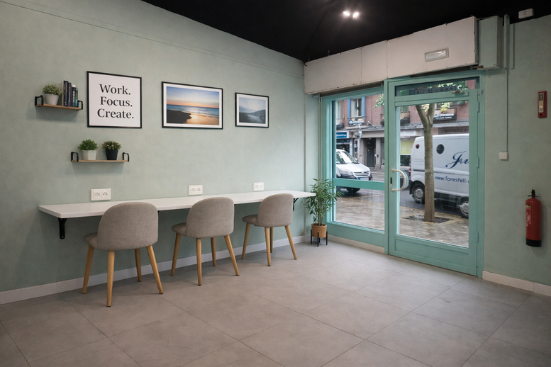This workspace is located in Valencia’s Quatre Carreres district, positioned within walking distance of the City of Arts and Sciences and the Turia Gardens. The immediate area is home to local amenities including Udaco La Nava grocers and Monné Gelatería Artesanal. For lunch or dinner, Alex restaurant is just two minutes away on foot.