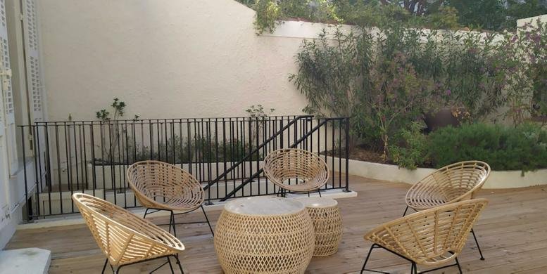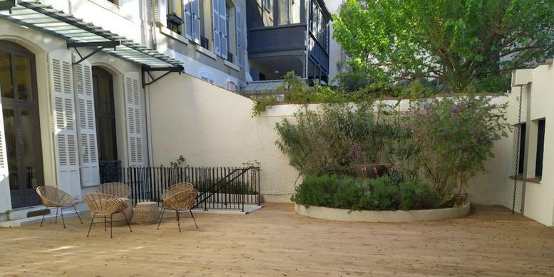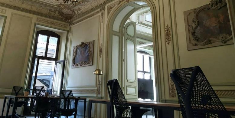 The coworking space boasts a fully renovated design, drawing inspiration from its historical hotel roots. Members of the space are able to utilize the impressive terrace at no extra cost. In addition, members have the ability to use all French centres free of charge.