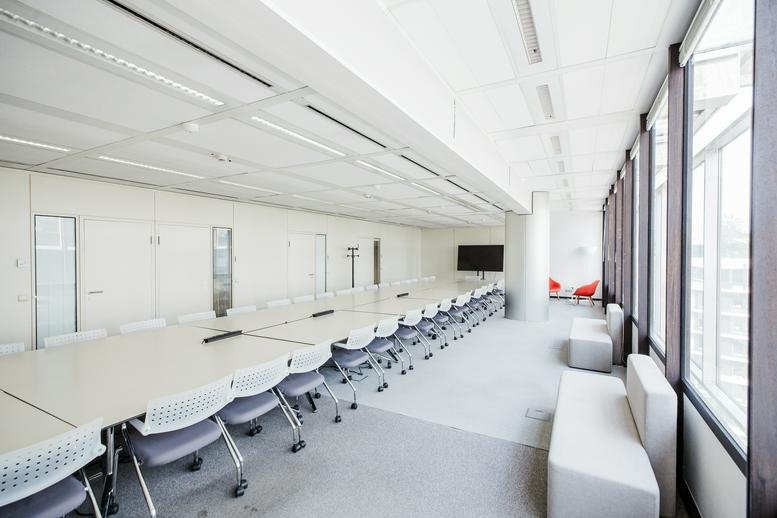 Located at 74 Rue de la Loi in the EU district, this seven-storey facility provides flexible workspace solutions for businesses. It includes ready-to-use individual offices, a shared lounge suited to informal collaboration, and well-equipped conference areas. An on-site dining option offers employees a convenient place for meals and networking. Housed within the landmark Brussimmo building, designed by Philippe Samyn, the venue features competitive pricing and short-term agreements.