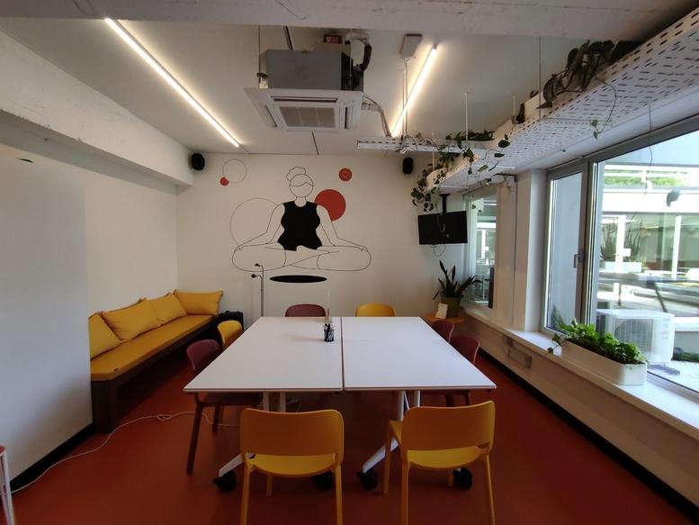 The establishment extends beyond basic office amenities. During off-hours, the spacious kitchen can be used for event hosting or recreational activities. To ensure a comprehensive service, all essential conveniences are provided, including free tea and coffee, wireless internet, parking, and printing services.