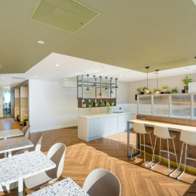 As a turnkey office solution, this workspace promotes 24/7 access, a designated lounge area, and the provision of on-site management.