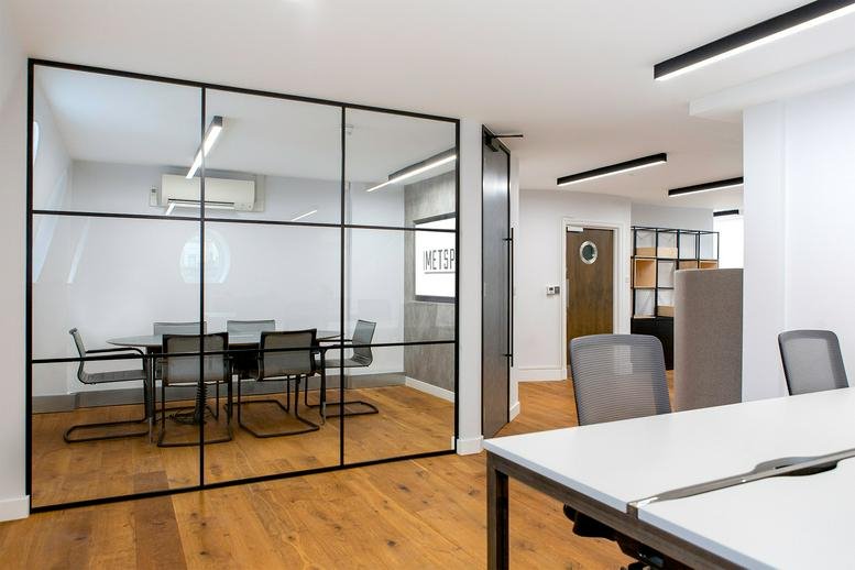 Situated on the third floor, this contemporary office space offers 835 square feet of well-appointed accommodation. The layout includes 13 workstations, an eight-person conference room and relaxed breakout areas. MetSpace's transparent pricing model covers all operational expenses, streamlining the administrative process for tenants. Generous windows bathe the office in natural light, fostering a productive environment, while a robust 100Mb internet connection ensures reliable connectivity.