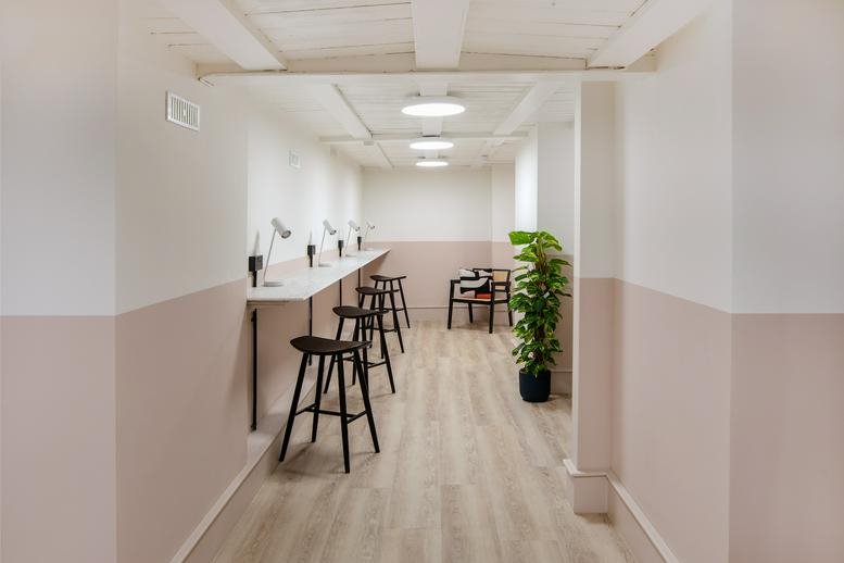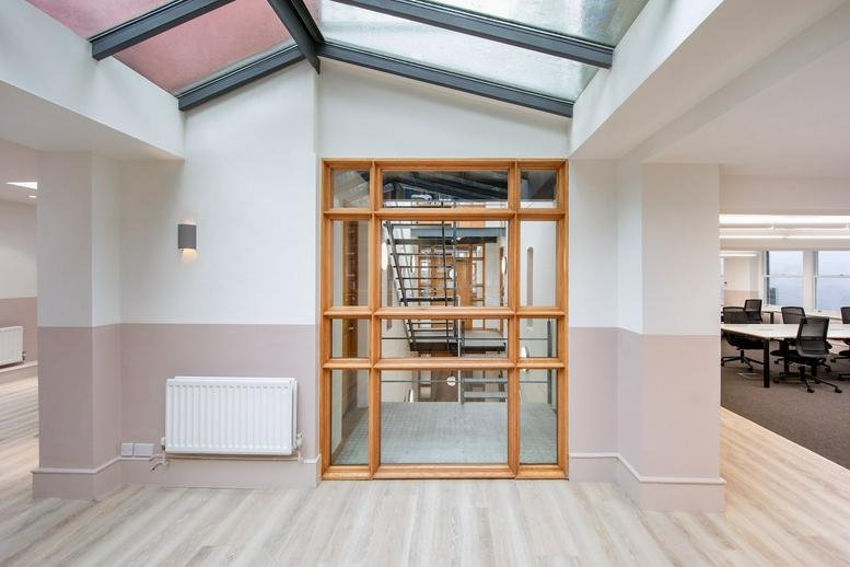 The building exudes a fusion of industrial allure and modern elegance, flaunting vaulted ceilings, a glass atrium, and visible rafters. Occupied predominantly by creative, retail and media companies, this space is perfect for those in pursuit of office premises within a vibrant business community.