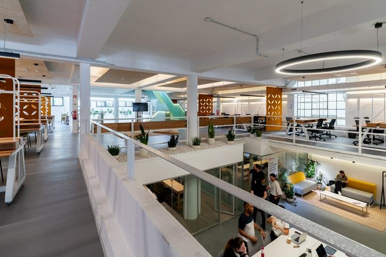 This contemporary coworking space in Lisbon provides a productive yet flexible work environment, ideal for ambitious businesses. Located in a lively neighbourhood, it balances professional efficiency with a welcoming community atmosphere. The area offers a mix of cafés, tree-lined streets and green spaces for breaks between meetings.
