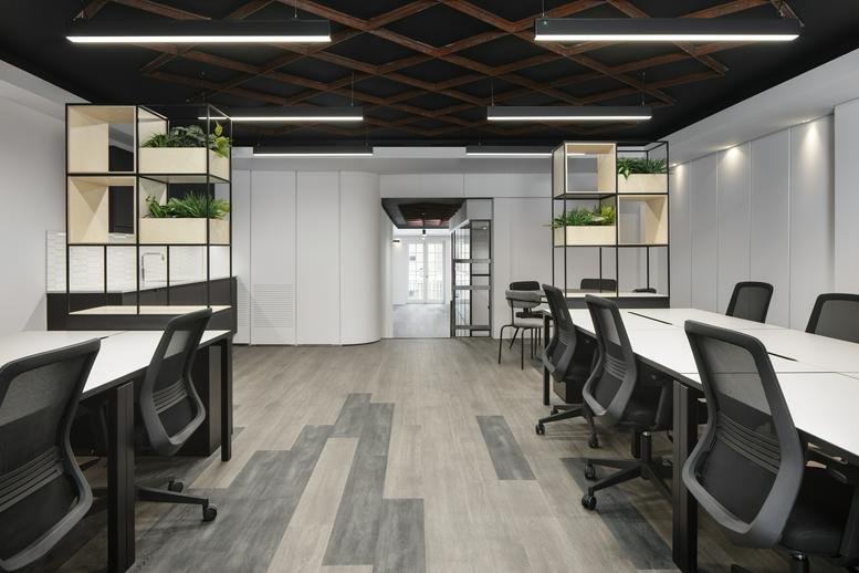 Each floor features carefully designed space, with the first floor spanning 1,249 sq ft and incorporating a spacious meeting room, 28 open-plan workstations, and a collaborative breakout area. The second floor mirrors this layout, offering 1,238 sq ft with 28 desks and a meeting room, maintaining a consistent design aesthetic throughout. The workspace is further enhanced by amenities such as a tranquil outdoor terrace, private kitchen, secure cycle parking, and a passenger lift. Additionally, each floor has its own restroom facilities, prioritising functionality and comfort.