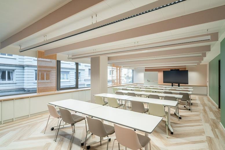 A distinguished Barcelona location presents a contemporary approach to flexible workspaces. Housed across two floors of a newly restored Colonial building, the venue is designed to high ecological standards. Spanning 2,400 square metres, it is available to businesses choosing either the Office Suite or HQ Flex packages, providing them with full access to all facilities. These include a multi-purpose event and training space, complemented by a landscaped outdoor terrace suitable for informal meetings or breaks.