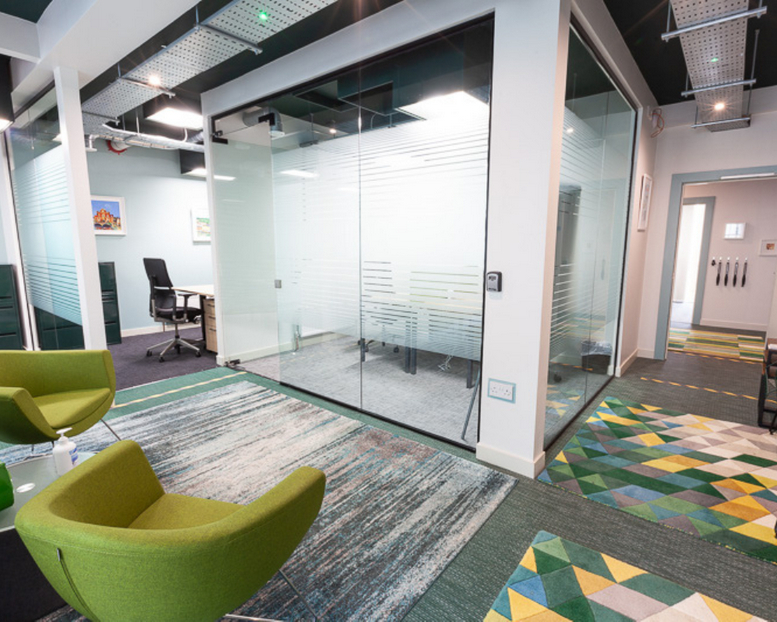 There are a variety of dedicated executive office spaces to accommodate between two and five people. The building offers 24-hour access, a meeting room to host customers and a registered mailbox for each resident. It has its own mini cinema which is ideal for small group meetings and events. There is also a peaceful garden area and an on-site coffee shop for networking and socialising.