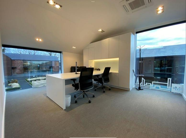 Located on Altrincham Road in Wilmslow, this office space is the top choice for businesses seeking a fully furnished workspace in a strategic location. With robust VPN capabilities, employees can efficiently connect to the company's IT networks regardless if they are working remotely or on the move. The building offers a host of convenient amenities including an attractive double-height lobby, electric car charging stations, and bicycle storage. Further enhancing the work experience are high-speed internet, professional cleaning services, a wellness room, and fitness centre.