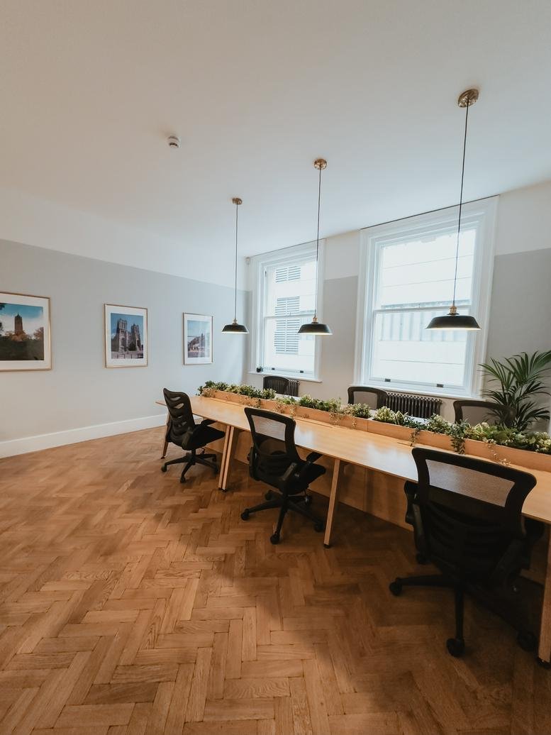 Armada House presents two well-appointed office spaces, suitable for 10 and 15 workstations respectively, with a combined capacity of 25. These turnkey offices come equipped with high-speed WiFi, abundant natural light, and a kitchen featuring modern appliances and a beverage station. The renovated historic building retains its distinctive character, creating a professional atmosphere for visitors whilst supporting tenants' contemporary business needs.