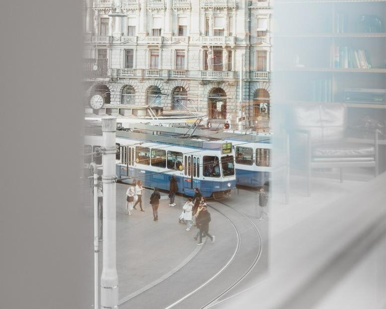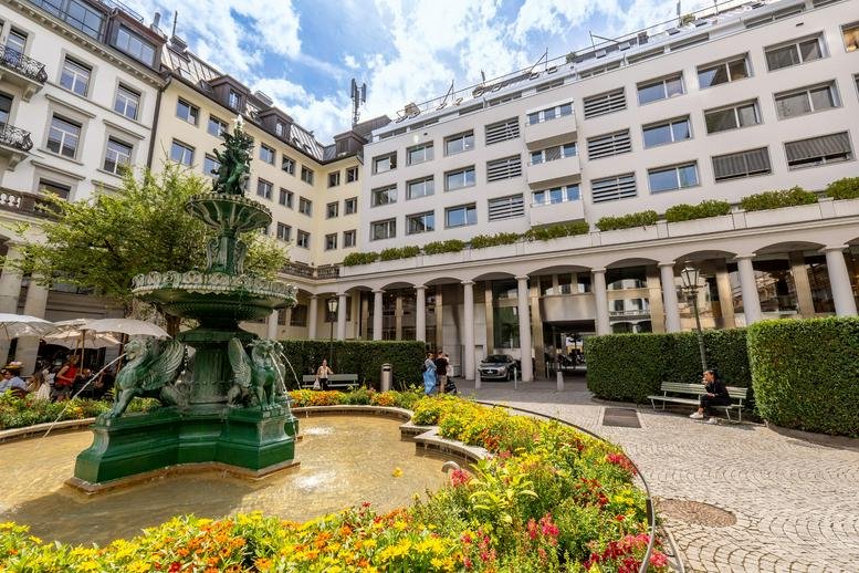 This workspace is located at Bahnhofstrasse 22 in Zurich, commanding a prominent position overlooking Paradeplatz. The area is excellently connected by public transport, with numerous bus lines serving the vicinity. Zurich Airport is roughly 12 kilometres away, typically an 18-minute drive via the A1L motorway. The neighbourhood also boasts a selection of well-regarded restaurants and cafés.