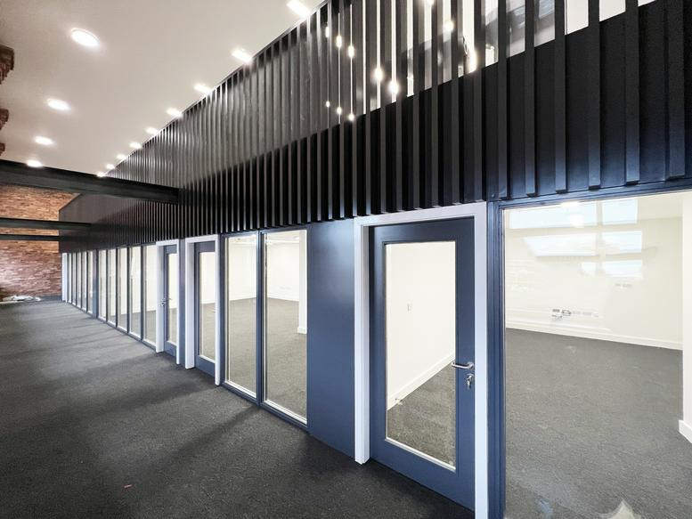 This modern workspace provides a fully serviced office environment tailored to growing businesses. Situated in a prime Liverpool location, it offers a range of workspaces—from compact ground-floor units to larger offices—with early reservation options available. Tenants and visitors enjoy dedicated parking, removing the stress of finding a space in the city. The building is equipped with climate control, 24/7 access, and security surveillance. Additional amenities include secure bike storage, shower facilities, kitchen areas, reserved parking, a communal lounge, and shared outdoor spaces.