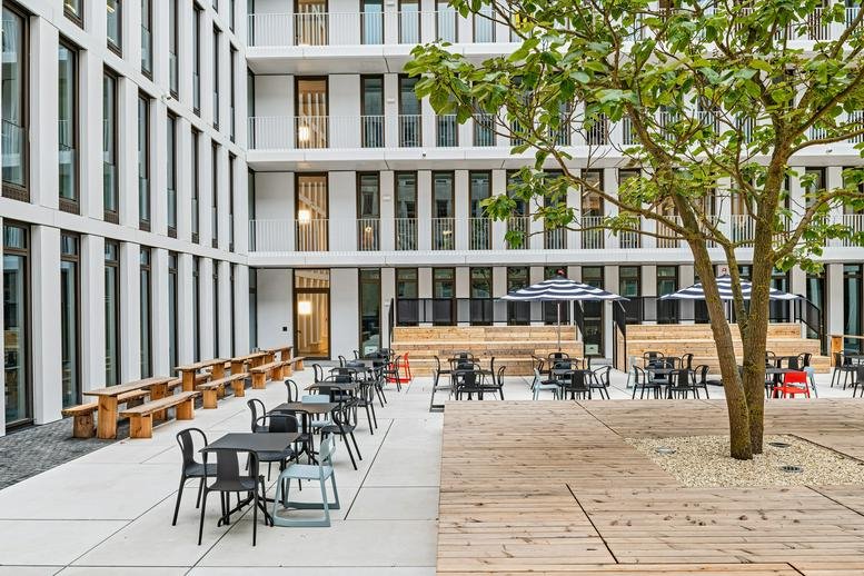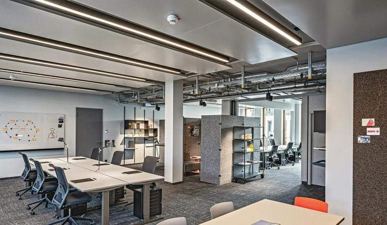 The centre boasts an impressive terrace and balcony that wraps around the entire building, providing the ideal space for unwinding and networking. To ensure a comfortable work environment, the centre is equipped with modern climate control infrastructure in all work areas, including non-air-conditioned offices during warm weather.