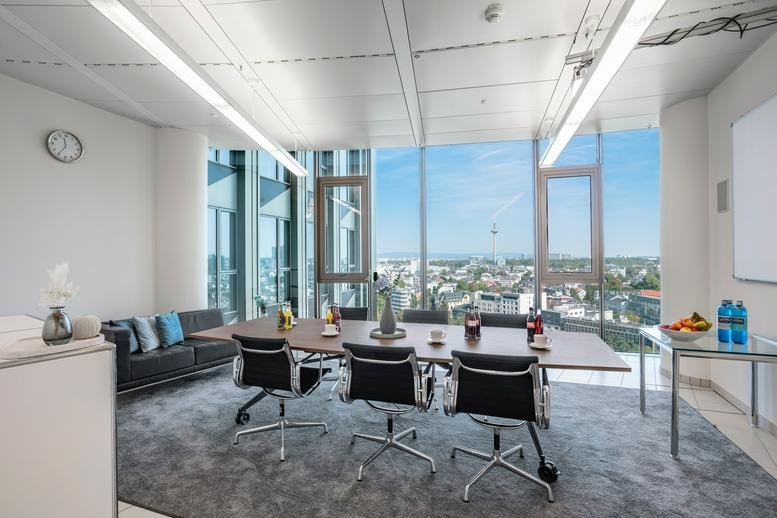 Situated at Friedrich-Ebert-Anlage 35 in Tower 185, this Frankfurt office enjoys a prime location in Hessen. The area offers excellent transport links for both regional and international travel. The A5 motorway provides direct access, placing the office approximately 14 kilometres from Frankfurt am Main Airport – typically a 13-minute drive. Public transport is readily available, with Hohenstaufenstraße Railway Station just 50 metres away. Within walking distance, there is a varied selection of restaurants, shops, nightlife venues, specialist retailers and wellness facilities. The location is well-connected in all directions, whether via the Hauptbahnhof stop or directly from the A5 motorway exit.