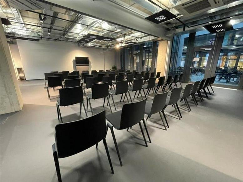 The 9th-floor conference rooms offer a particularly stunning view of Hamburg's rooftops. These rooms provide a unique and inspiring setting for meetings and conferences. As part of an established business park estate, this collection of offices offers the added benefit of facilitating networking and cooperation with complementary ventures. This makes it a valuable resource for small startup teams and individuals looking to grow their businesses.
