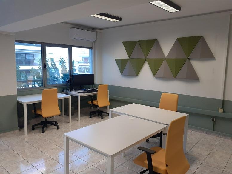 This office sits on the main avenue connecting Thessaloniki city centre to the international airport. The airport is a six-minute drive via Leoforos Georgikis Scholis. The site offers easy access to the A25, EO67, and EO16 motorways, while the city centre is a thirty-minute journey by car or bus.