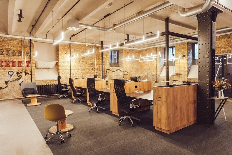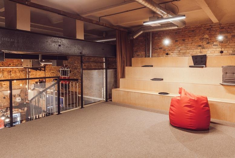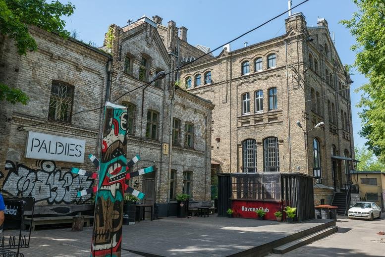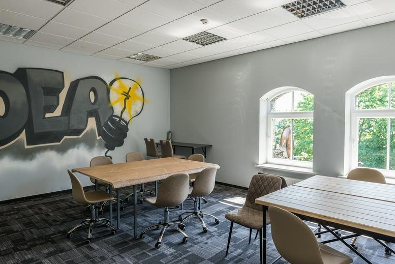 This workspace sits within a creative courtyard in Riga’s Centrs district, just off Krišjāņa Valdemāra Street and Brīvības Street. The Dailes Theatre and the Laima Chocolate Museum are both within a five-minute walk, while local amenities include a Rimi supermarket and a post office nearby. Dining options such as Valmiermuižas vēstniecība and Labietis are located within 50 metres.