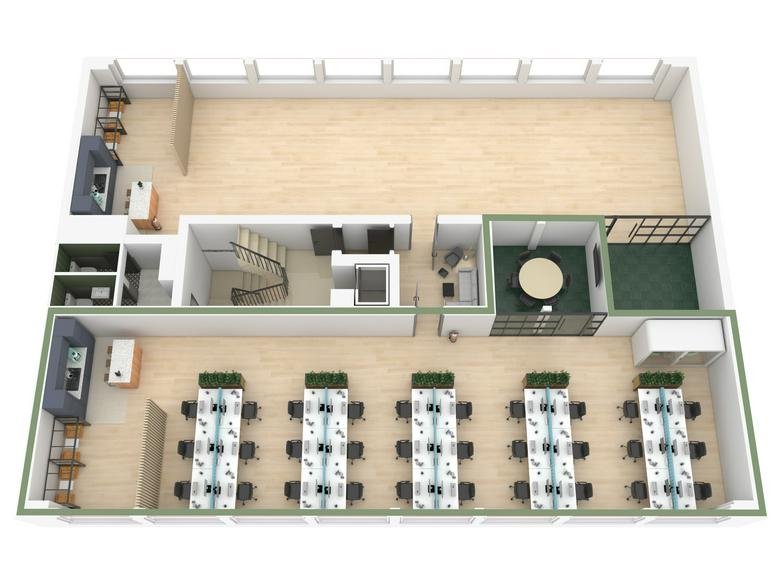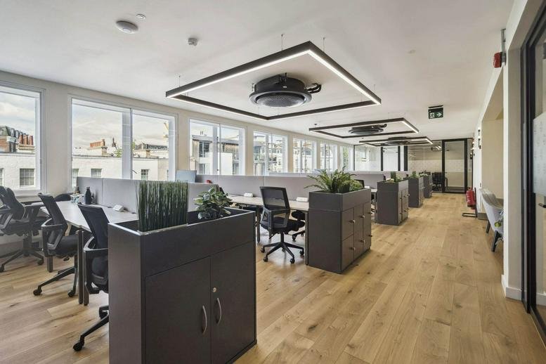 Bright and airy, these workspaces feature high ceilings and windows on both sides that flood the rooms with natural light. The interior retains historic character through original brass window fixtures, while offering modern touches like stylish kitchen areas. Teams can fully customise their space to match their branding, creating a professional home that feels personal.