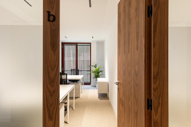 Tucked into the Sarrià-Sant Gervasi area, this Carrer de Raset office occupies a quiet residential position. The landscaped gardens of Turó Park, featuring a pond and open-air theatre, are just steps from the building. Practical amenities are nearby, including a post office 125 metres away and local dining options such as Restaurant Italià Massimo.