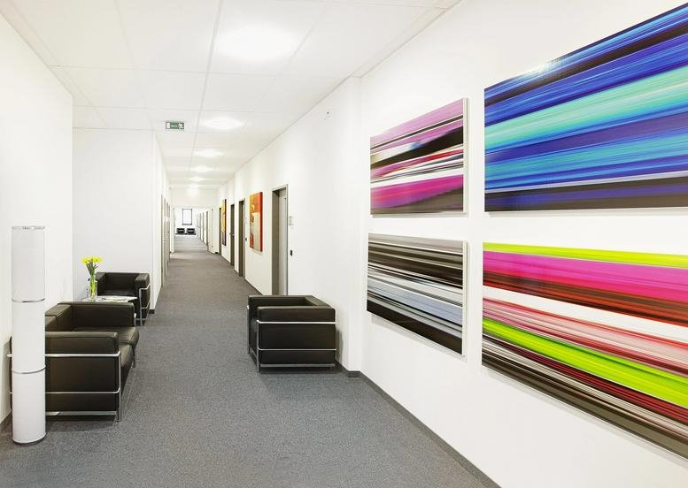 Formerly the arrival hall of the airport Munich Riem, this business centre combines modern architecture and interiors with the historic charm of the site. The centre provides a prestigious selection of fully equipped offices of various sizes, starting at 14 sq m. Single and team offices are availavle, as well as several conference rooms, a lobby with reception desk and courtyard gardens. There is also secure underground parking space provided.