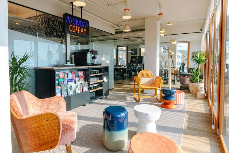 Behind the striking glass facade of this seafront building, tenants find a range of modern offices supported by a dedicated on-site team. Multilingual staff handle administrative tasks and telephone answering, while an IT support team is available to help with technical setup. The interior features open-plan workstations and well-equipped meeting rooms, all fitted with climate control and high-speed internet.