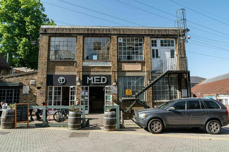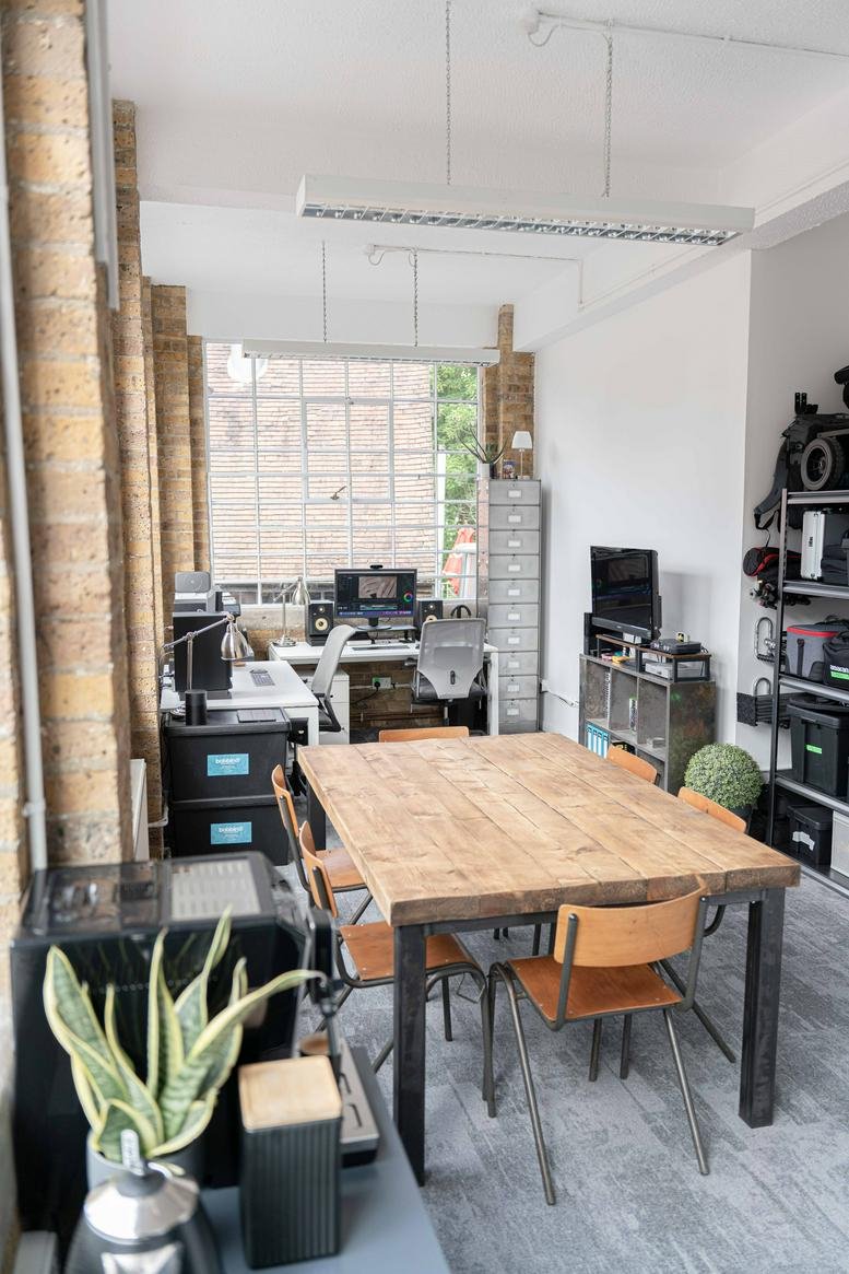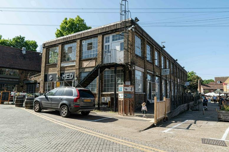 This office sits within a converted textile mill at Merton Abbey Mills, a historic site on the River Wandle once home to Liberty silk printing. The complex still features a working water wheel. Colliers Wood Tube station is an eight-minute walk away, while South Wimbledon Tube and Haydons Road rail station are reached within 14 and 13 minutes respectively.