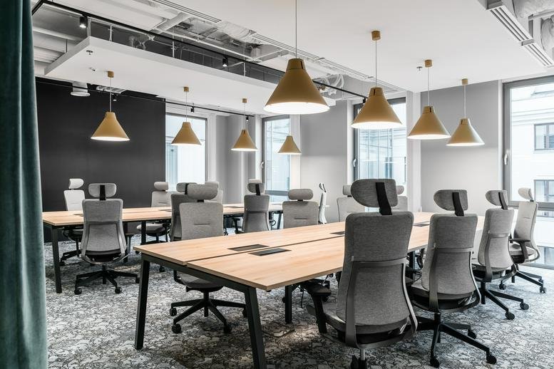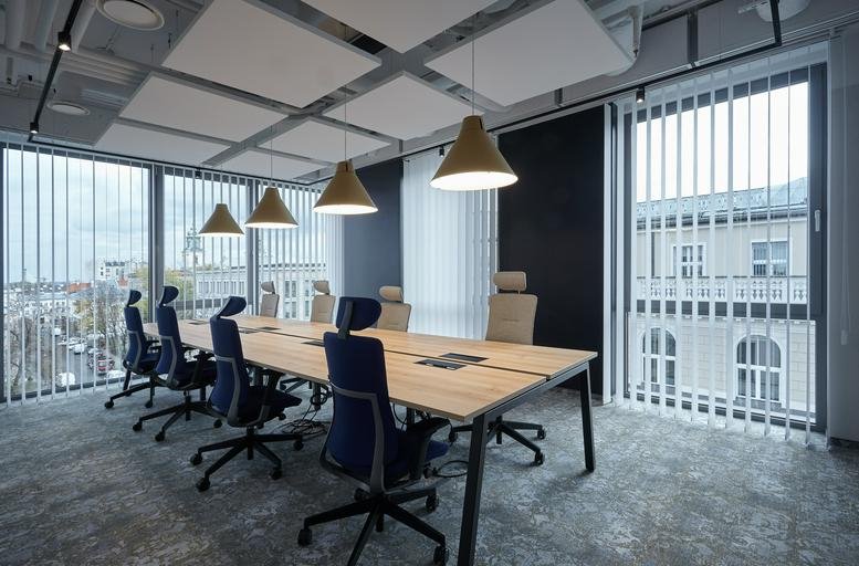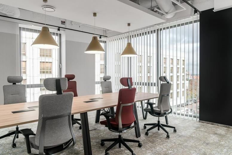 Centrally situated in Warsaw's vibrant commercial hub, this thoughtfully designed office space offers a prime location for businesses seeking a refined and productive work environment. The facility is tailored to meet the diverse needs of professionals, featuring modern amenities and services that foster innovation and efficiency. Alongside stylish coworking areas and private offices, tenants benefit from a range of on-site support services, including reception assistance, fully equipped meeting rooms, and high-speed internet connectivity, all designed to facilitate seamless operations and effective client engagement. The workspace itself boasts panoramic city views and an abundance of natural light, creating a dynamic and inspiring atmosphere that stimulates creativity and focus.