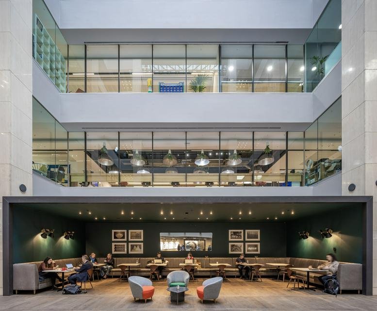 The building's interior is incredibly versatile, featuring well-appointed meeting rooms, breakout areas, and workstations, all designed to promote optimal productivity for workers. When it's time for a well-deserved break, the lively café and bar managed by coffee experts Grind offer the perfect setting to recharge and unwind during a busy day.