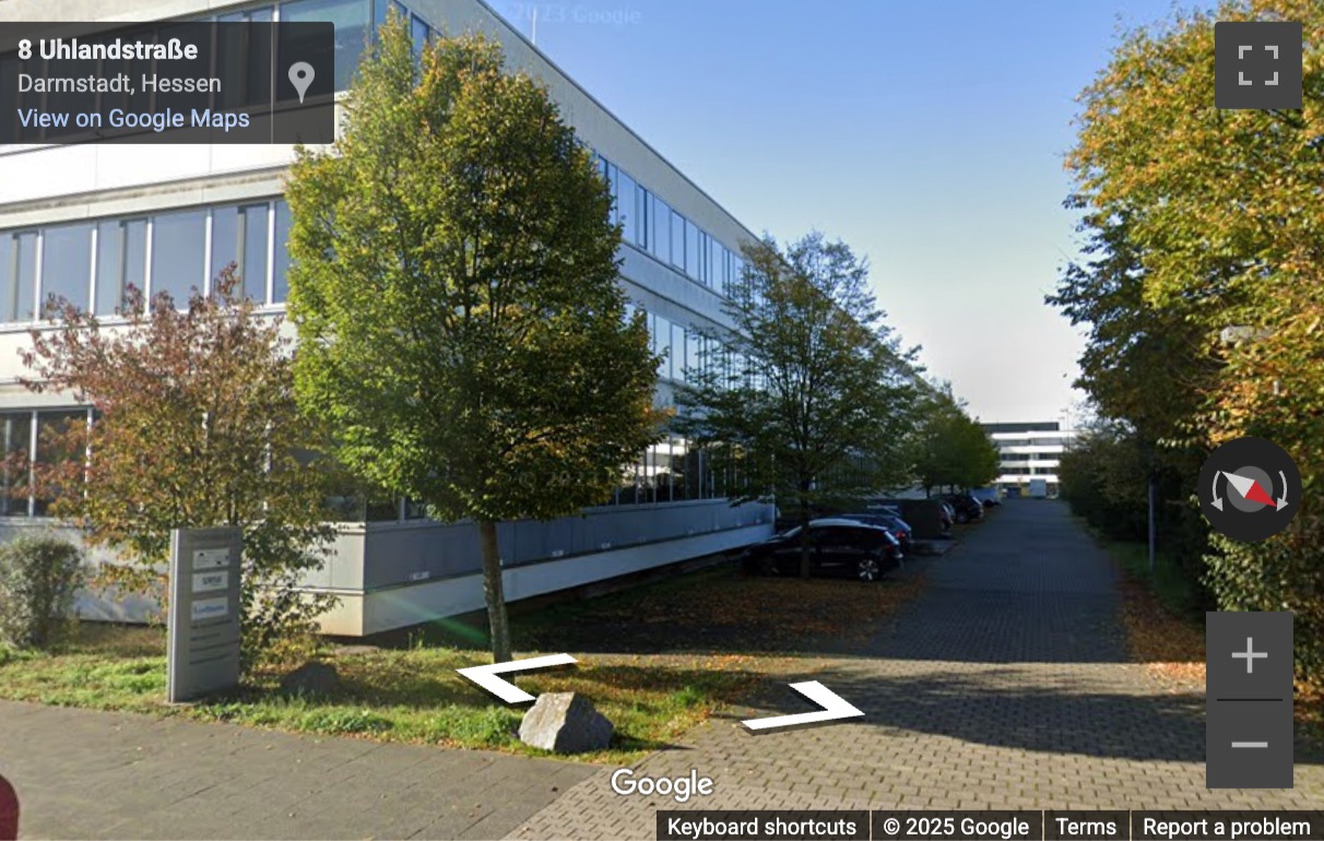 Located at Uhlandstraße 9 in Darmstadt, Hessen, this office space benefits from a strategic position in Germany’s celebrated "City of Science." Approximately 40 kilometres from Frankfurt, the area is a thriving centre for innovation, drawing professionals from technology, engineering, and research sectors. The Darmstadt-Eberstadt train station, less than a kilometre away, provides excellent transport links for visitors travelling from across the region. A brief drive along the Autobahn connects you to Darmstadt’s bustling city centre, roughly eight kilometres away. For dining, Heidelberger Landstraße, located nearby, features a variety of cafés and restaurants, making it a convenient spot for lunch or informal meetings.