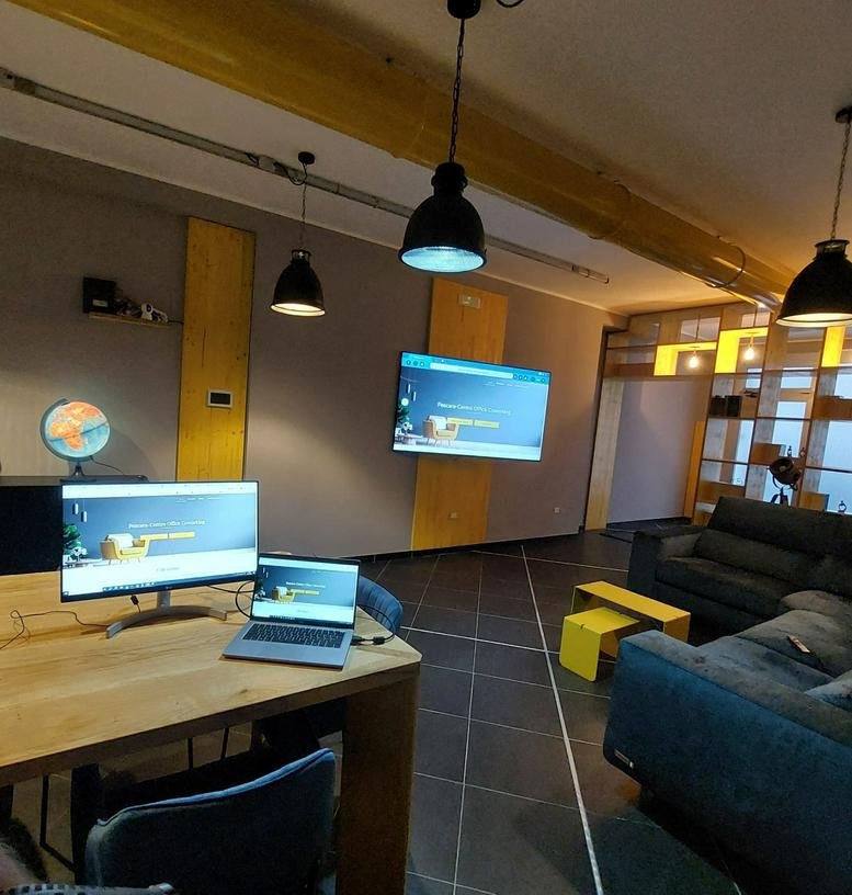 Nestled in central Pescara, this modern office space offers a refined setting that fosters productivity. Suitable for a range of professionals, from corporate teams to independent contractors, the facility boasts a variety of work areas complemented by a shared coffee zone ideal for informal meetings. The robust IT infrastructure ensures reliable connectivity throughout the premises and beyond. For added convenience, the space provides legal domiciliation services, making this well-situated address in Pescara an excellent choice for businesses seeking a professional base of operations.