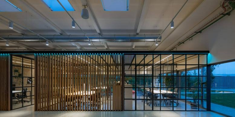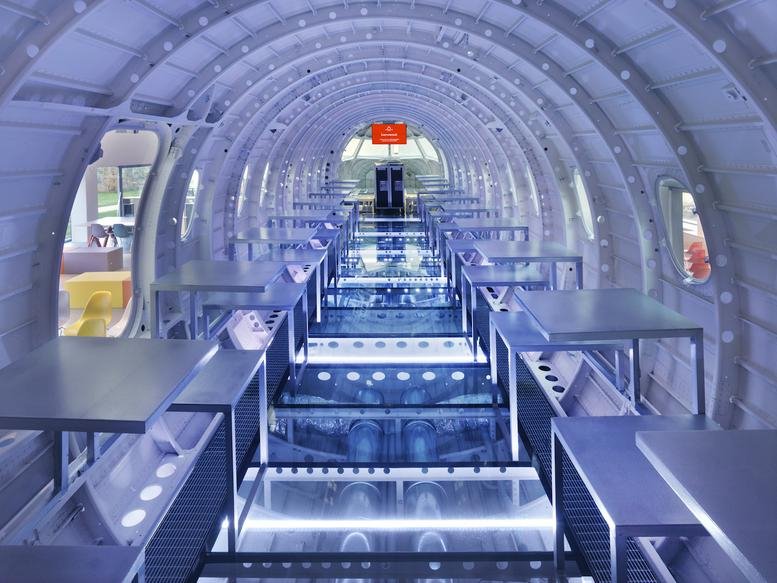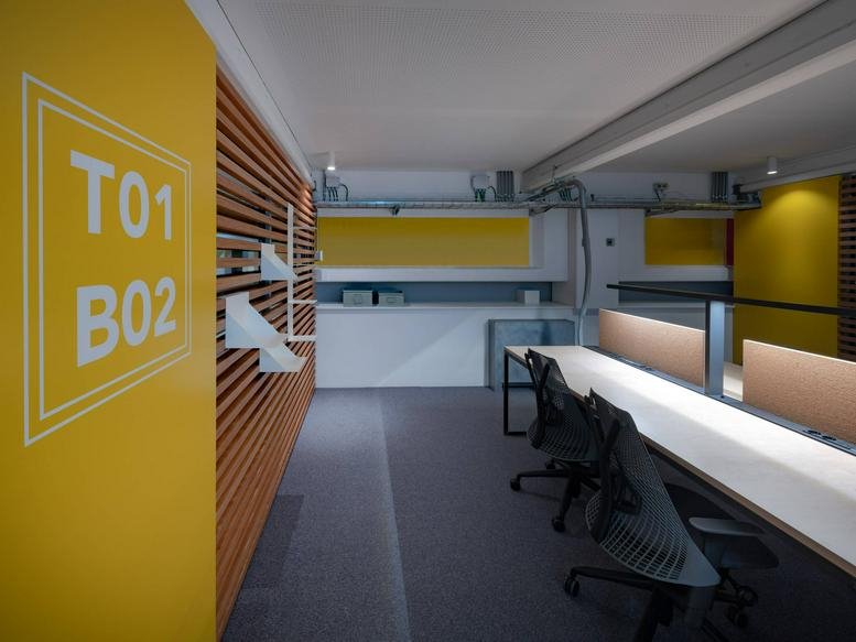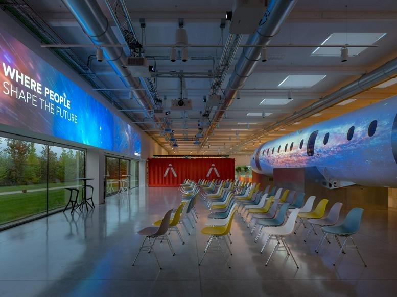 Infinite Area is a dynamic innovation hub offering collaborative workspaces and curating events that catalyse change and propel business growth. Progressive companies looking to reduce their environmental impact are increasingly turning to sustainable office solutions to boost productivity and facilitate expansion. At the heart of the facility stands an aircraft fuselage, symbolising the collective voyage of innovation. Housed in a repurposed warehouse, Infinite Area provides a modern, eco-conscious environment that draws inspiration from the expansive nature of airport terminals, embodying energy and possibility.